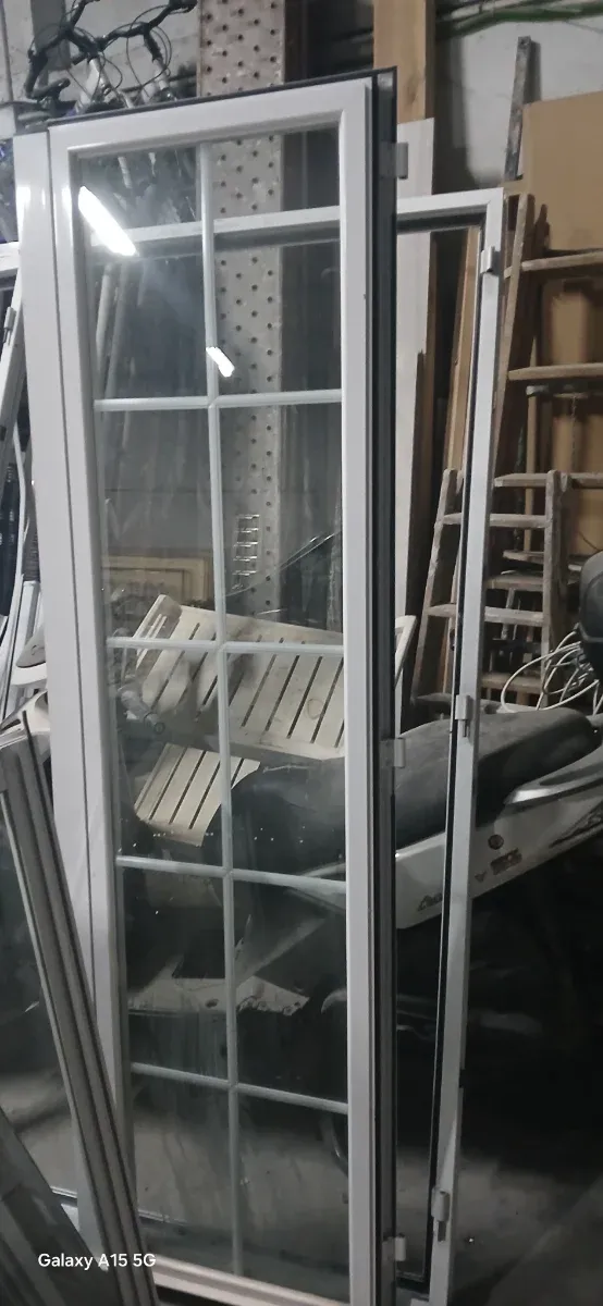 Balcón de aluminio blanco con cristales. - Marco de aluminio blanco. - Cristales divididos en cuadrículas. medida 2 metros por 120