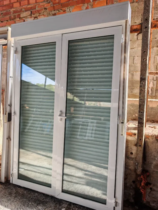 Detalles del productoBalconera de aluminio con rotura de puente térmico, 2 puertas abatibles, persiana y cristal doble climalit