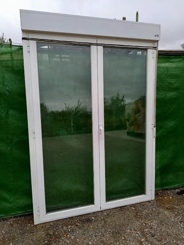 Balconera de aluminio con dos hojas abatibles. Ideal para tu hogar. - Marco de aluminio blanco. - Doble acristalamiento. - Tirador central.
