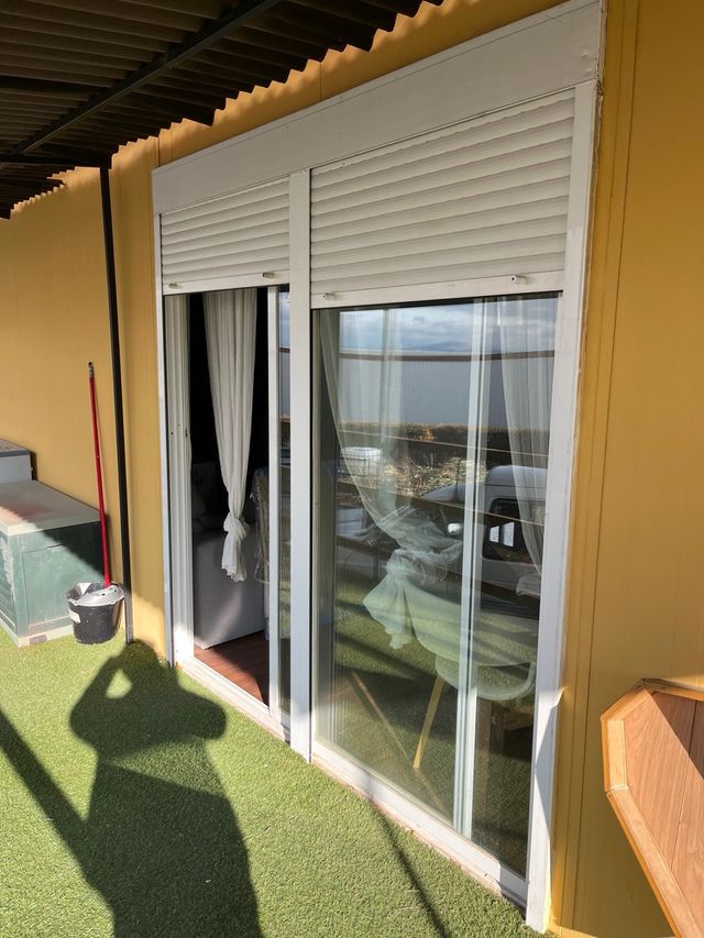 Detalles del productoBalconera corredera de cristal con marco blanco.