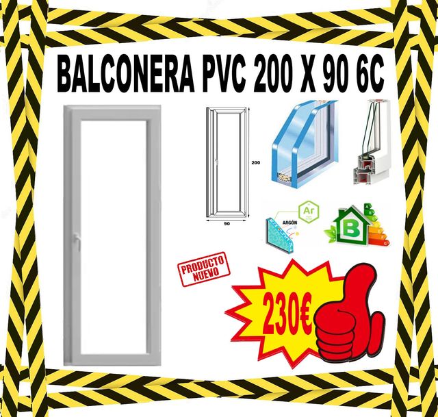 Detalles del productoBalconera de PVC en color blanco, con 1 hoja y apertura abatible (que es la más hermética y segura). La balconera lleva un perfil de PVC de 70 mm de espesor (que aporta un alto aislamiento) y cuenta con 6 cámaras en marco y 6 en hoja. Doble acristalamiento de 24 mm 4/16/4 con tratamiento bajo emisivo y gas argón, Vidrio con acabado transparente. Medidas: 90 x 200 cm (ancho x alto). PRODUCTO NUEVO EN SU EMBALAJE ORIGINAL
