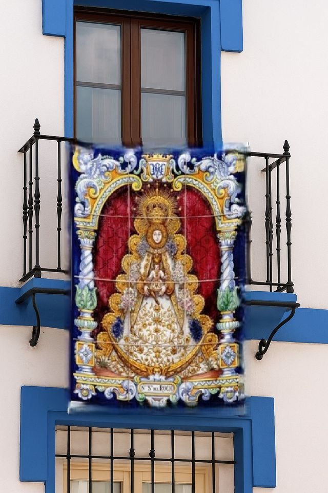 Detalles del productoPreciosa balconera de cerámica con la imagen de la Virgen del Rocío.
