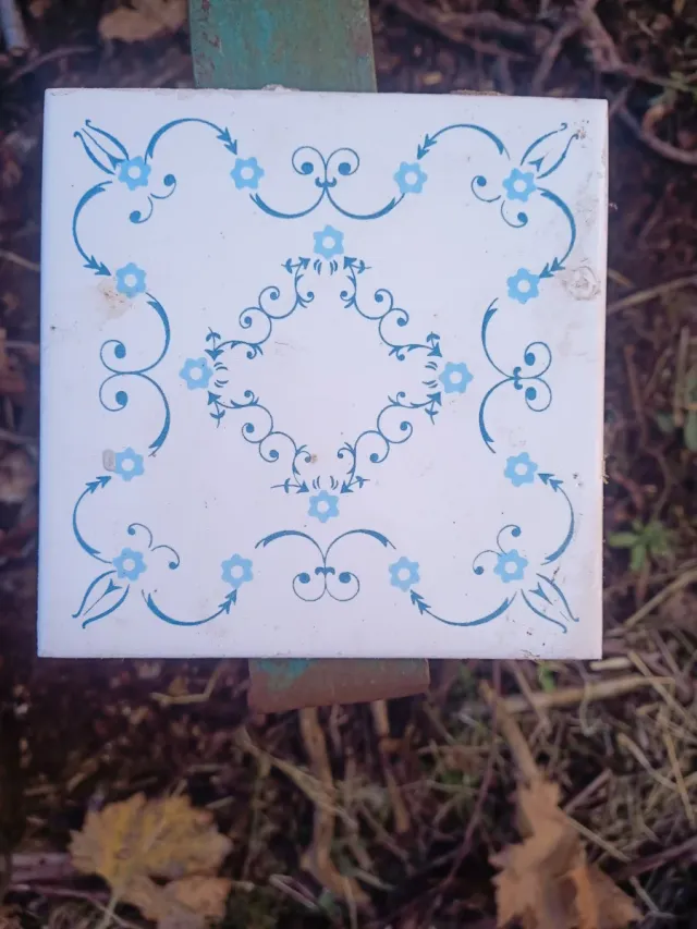 Detalles del productoBaldosa antigua con un bonito diseño floral en azul sobre fondo blanco. Ideal para coleccionistas o proyectos de decoración.