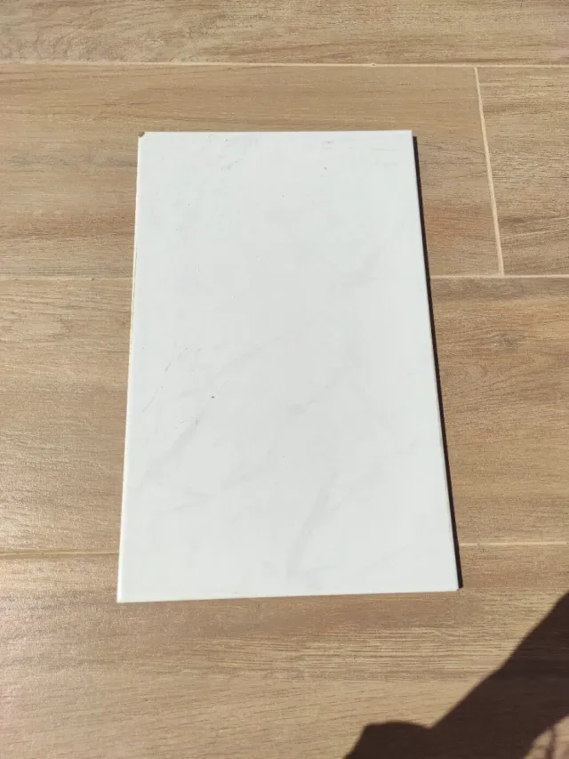 Baldosa de diseño moderno en color blanco. Ideal para renovar espacios. -Medidas: 40 x 25 cm - Acabado liso y elegante. - Patrón sutil tipo mármol.