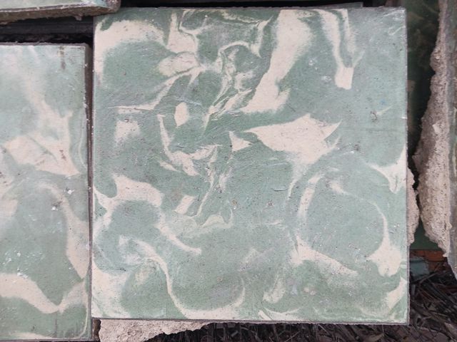 Detalles del productoBaldosa hidráulica con un diseño marmoleado en tonos verdes y blancos. Cada baldosa presenta un patrón único.