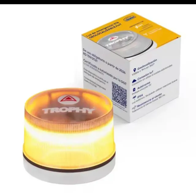 Detalles del productoBaliza de emergencia V16 de la marca Trophy, certificada y autorizada por la DGT.