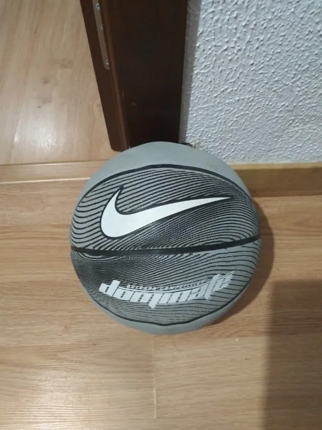 Balón de baloncesto Nike Dominate con un diseño moderno y llamativo. - Color gris con detalles en negro y blanco. - Logo de Nike visible.