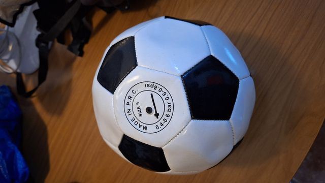 Balón de fútbol clásico blanco y negro, talla 5. - Fabricado en P.R.C. - Presión recomendada: 0.4-0.6 bar (6-9 psi).