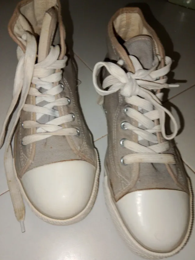 Zapatillas de lona altas, estilo Converse, en color gris. Como nuevas si me las he puesto tres o cuatro veces ya es mucho como se ve en las olas son nuevas prácticamente número 40-