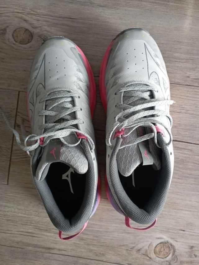 Como nuevo · 38.5 · Mizuno · Gris y Rosa