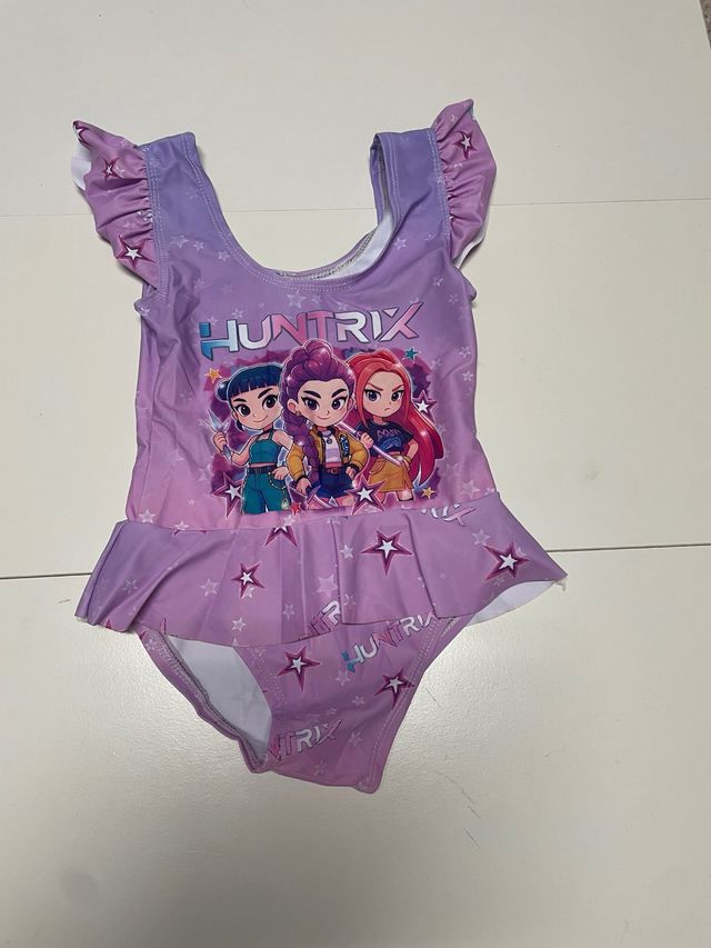 Detalles del productoBañador infantil con estampado de Huntrix y estrellas.