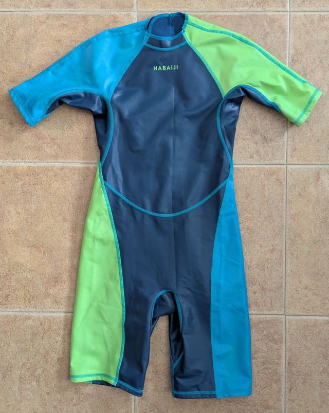 Detalles del productoTraje de baño infantil shorty térmico de la marca Nabaiji. Está en buen estado.