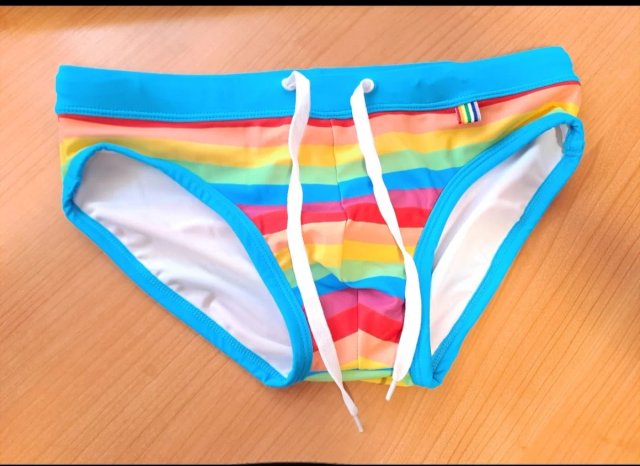 Se vende bañador para hombre o calzoncillo de natacion multicolor, con estampado de arcoiris, talla L. Se trata de ropa de baño de cintura baja con cordón blanco. Abstenerse curiosos por favor, solo vendo el producto. No enseño fotos con el puesto ni nada. Repito solo vendo producto. Medidas: cintura: 86-91 cm. y cadera: 102-107 cm. La medida de lado a lado es 36,5 cm. Aunque en la talla ponga la L es mas bien una M, por lo que si utilizas una M te quedará bien. Material: poliester. Cierre: con cordón. Por favor, solo contactadme a traves de este chat.