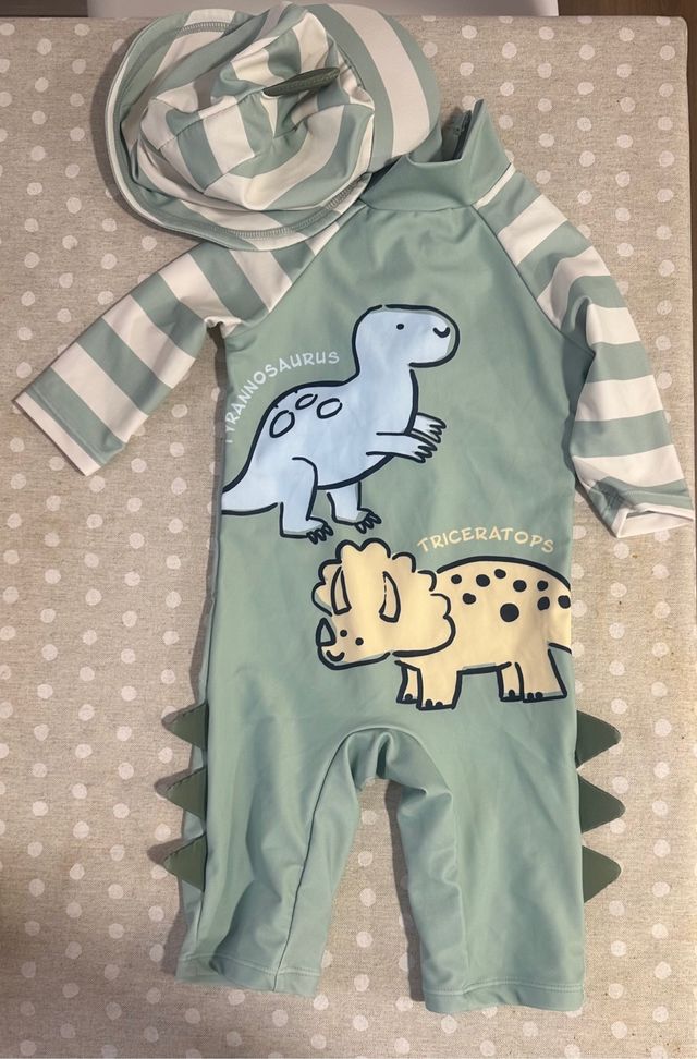 Bañador y gorra dinosaurios . protector solar