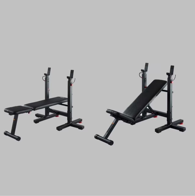 - Se incluye barra de pesas con dos cierres y dos discos de 10kg todo de Decathlon