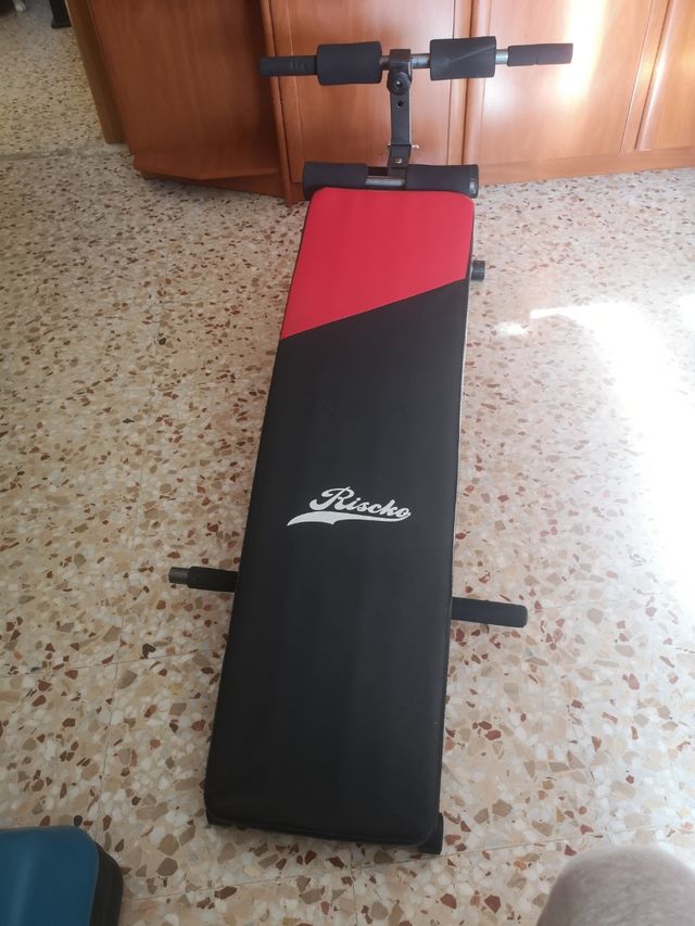Detalles del productoSe vende banco de abdominales y musculacion. Esta en perfecto estado. Incluye 2 gomas elásticas y 2 pesas (el banco tiene soporte para guardarlas). El banco acepta pie de apoyo para hacerlo plano(el pie no incluido). , lo puedo acercar donde sea si se necesita