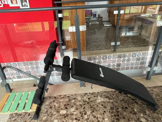 Banco para ejercicios abdominales de la marca Tectake. Ideal para entrenar en casa. - Tapicería acolchada. - Estructura metálica. - Ruedas para tobillos.