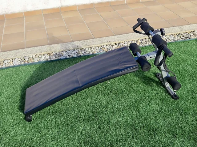Detalles del productoBanco para ejercicios de abdominales, con estructura metálica y acolchado.