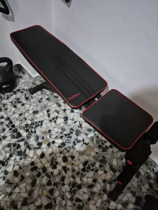 Detalles del productoBanco de abdominales de la marca Yoleo, ideal para entrenar en casa. Su diseño es moderno y funcional.