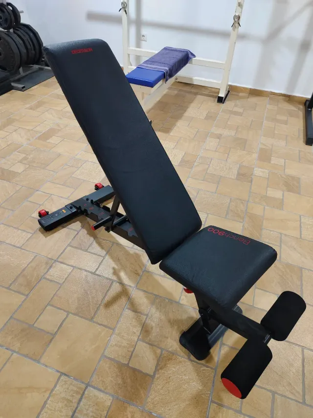 Detalles del productoBanco de gimnasio Decathlon modelo Bench900, ideal para entrenamientos en casa.