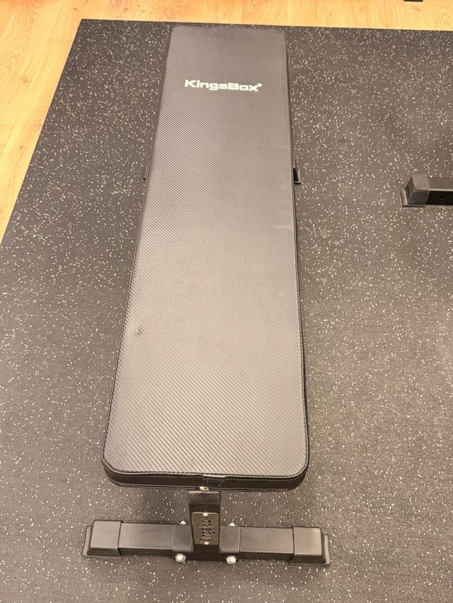 Banco de gimnasio de la marca Kingsbox, ideal para entrenamientos. - Diseño moderno y robusto. - Tapicería con acabado texturizado.