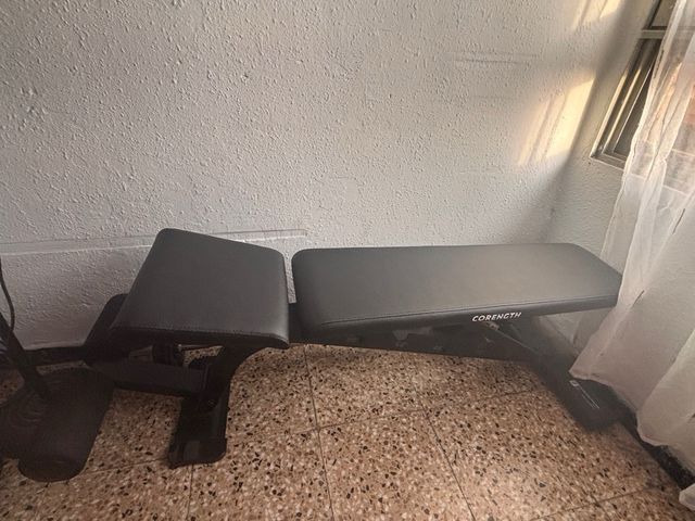 Detalles del productoBanco de musculación marca Corength, reforzado y con respaldo inclinable.