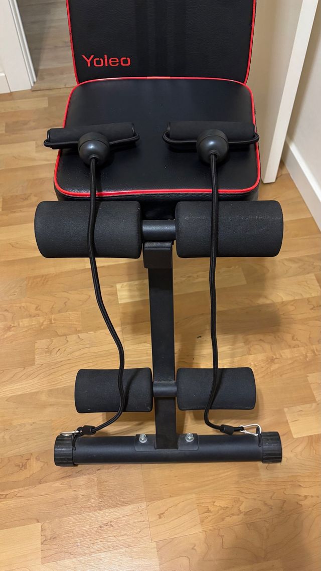 Detalles del productoBanco de musculación Yoleo en color negro y rojo. Ideal para entrenar en casa.