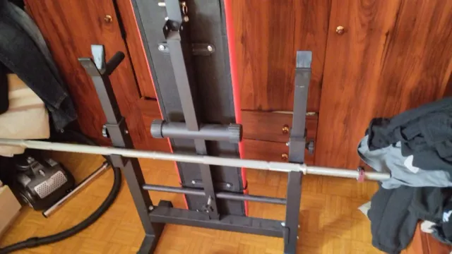 Detalles del productoBanco de pesas para entrenamiento en casa. Su diseño permite ajustar la inclinación para diferentes ejercicios.