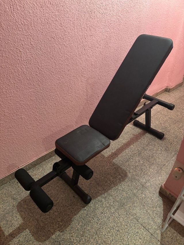 Banco de pesas con estructura metálica y acolchado. - Tapicería negra. - Soporte para piernas.