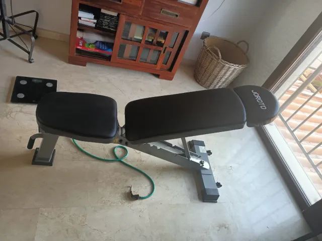Banco de pesas ajustable para entrenamiento en casa. Se vende por mudanza - Soporta hasta 450 KG. - Diseño ergonómico para todo el cuerpo.