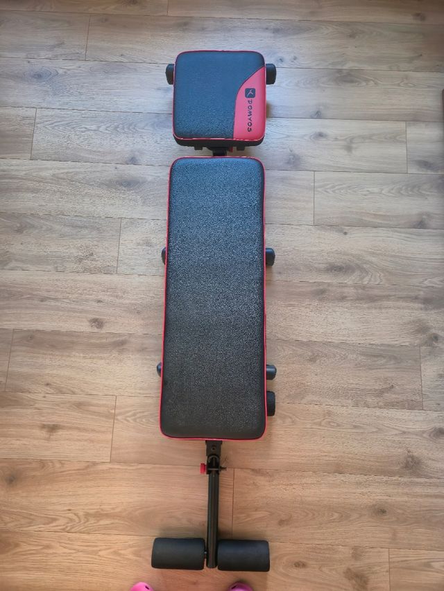 Detalles del productoBanco de pesas DOMYOS con estructura robusta y acolchado cómodo. Inclinable y plegable.