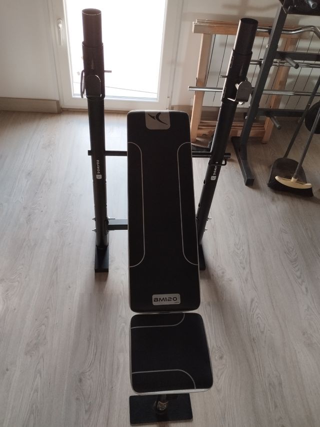 Banco de pesas Domios BM120 en color negro. Ideal para entrenamientos en casa. -Ajustable - Diseño compacto. - Acolchado cómodo.