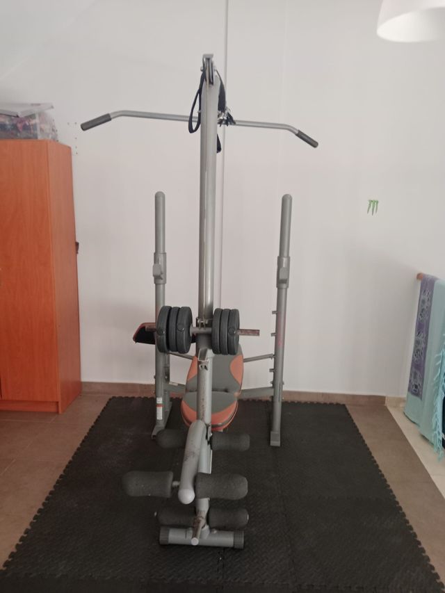 Detalles del productoBanco de pesas multifunción para entrenar en casa. Ideal para rutinas de fuerza y tonificación.