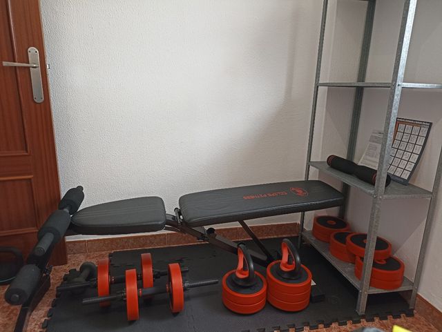 Detalles del productoBanco de pesas para entrenamiento en casa. Ideal para rutinas de fuerza y tonificación.