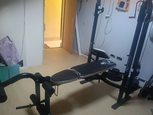Banco de pesas multifuncional con pesas y barras