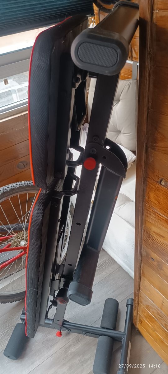 Detalles del productoBanco de pesas para entrenamiento en casa. Su diseño permite guardarlo fácilmente.