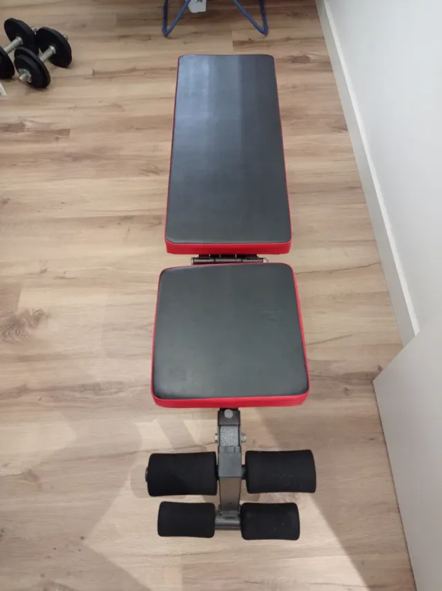 Detalles del productoBanco de pesas reclinable con estructura metálica y acolchado en asientos.