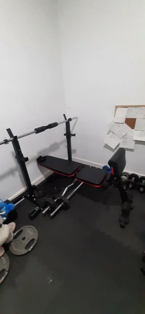 Detalles del productoBanco de musculación con soportes ajustables para ejercicios como sentadillas. Ideal para tu gimnasio en casa.