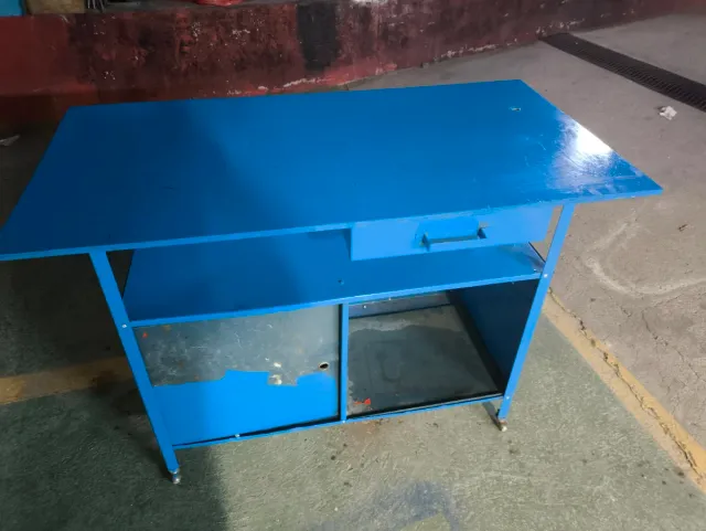 Banco de trabajo de color azul, ideal para organizar herramientas y equipos. - Estructura metálica resistente. - medidas 117 x62x 85 alto