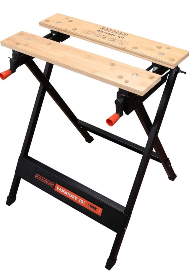 Detalles del productoBanco de trabajo plegable Black & Decker Workmate 301, ideal para proyectos en casa o en el taller. Su diseño permite un fácil almacenamiento y transporte.