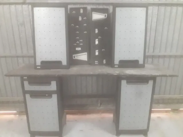 Detalles del productoBanco de trabajo con armarios de resina para herramientas.