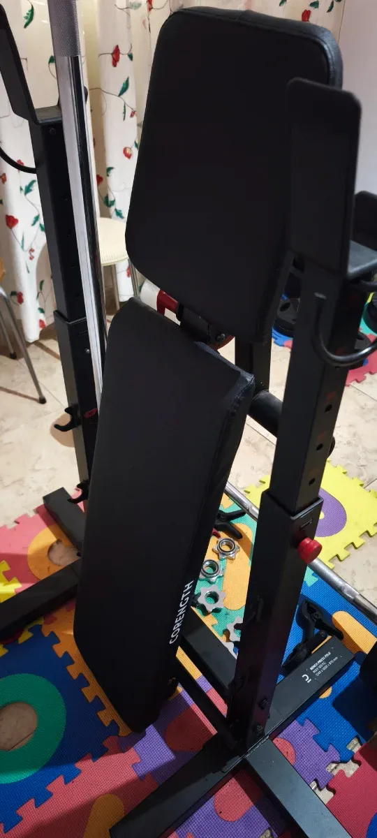 Detalles del productoBanco de musculación con juego de pesas incluido. Ideal para entrenar en casa.