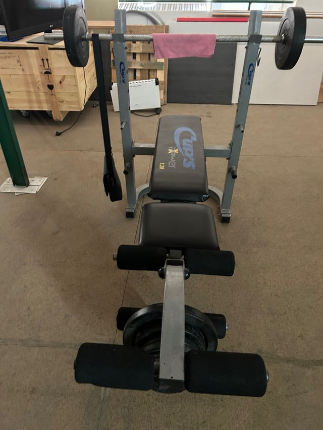 Detalles del productoBanco de pesas Cups ideal para realizar press de banca y otros ejercicios. Está en buen estado