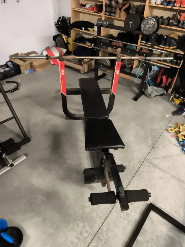 Detalles del productoBanco de pesas reclinable, apto para press de banca y ejercicios de piernas. Su diseño permite ajustar el respaldo para diferentes tipos de entrenamiento.