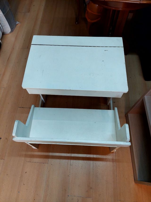 Banco pupitre infantil de madera pintado en blanco. Ideal para que los más pequeños estudien o jueguen. - Diseño clásico. - Estructura robusta.