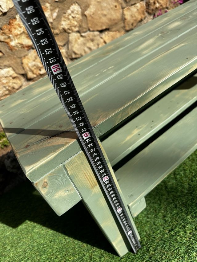 Detalles del productobanco hecho artesanalmente y con diseño unico ideal para recibidores de casa o pie de cama verde oliva envejecido y barniz protecto. se puede hacer a medida ya que se hace como hobbie madera de embalaje pino.