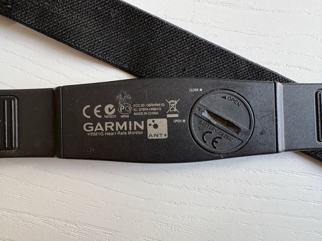 Banda de monitor de ritmo cardíaco Garmin HRM1G. - Modelo: HRM1G - Conexión: ANT+ - Batería: CR2032 - Fabricado en China