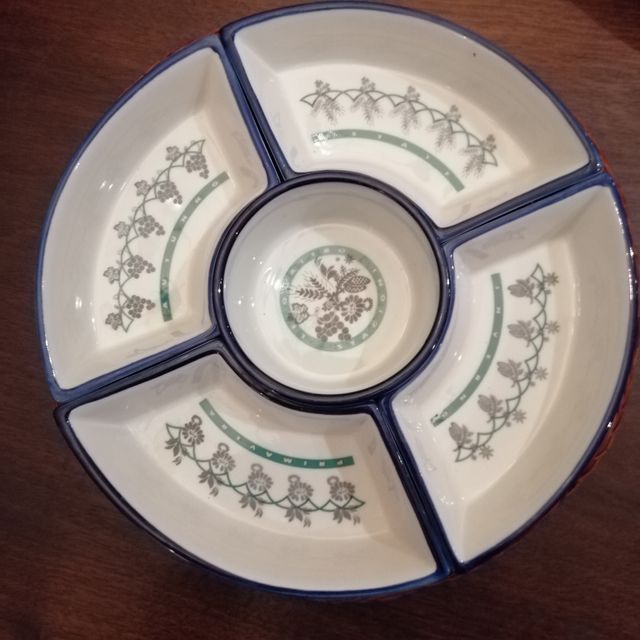Bandeja aperitivos porcelana con base de mimbre