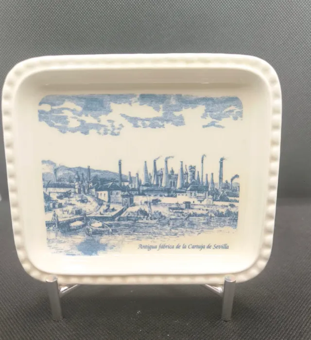 Detalles del productoBandeja decorativa moderna con diseño de la antigua fábrica de La Cartuja de Sevilla.