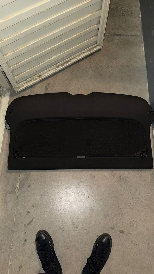 Bandeja de maletero para Audi A3 de 3 puertas. Fabricada en tela negra. - Malla central. - Enganches laterales.